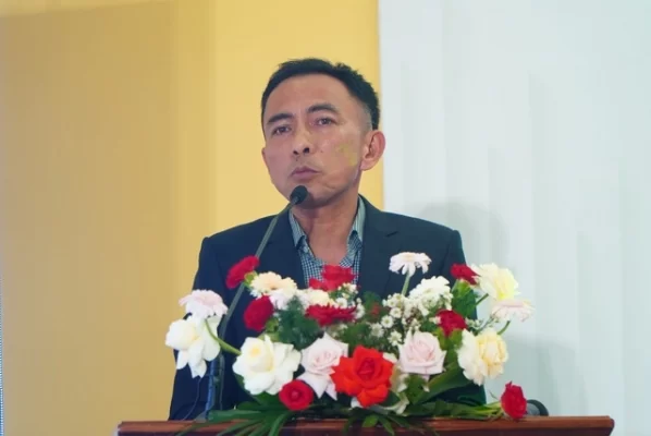 Ông Huỳnh Công Tuấn, Chủ tịch HĐQT Công ty CP giống thủy sản Kim Hoàng phát biểu tại buổi lễ